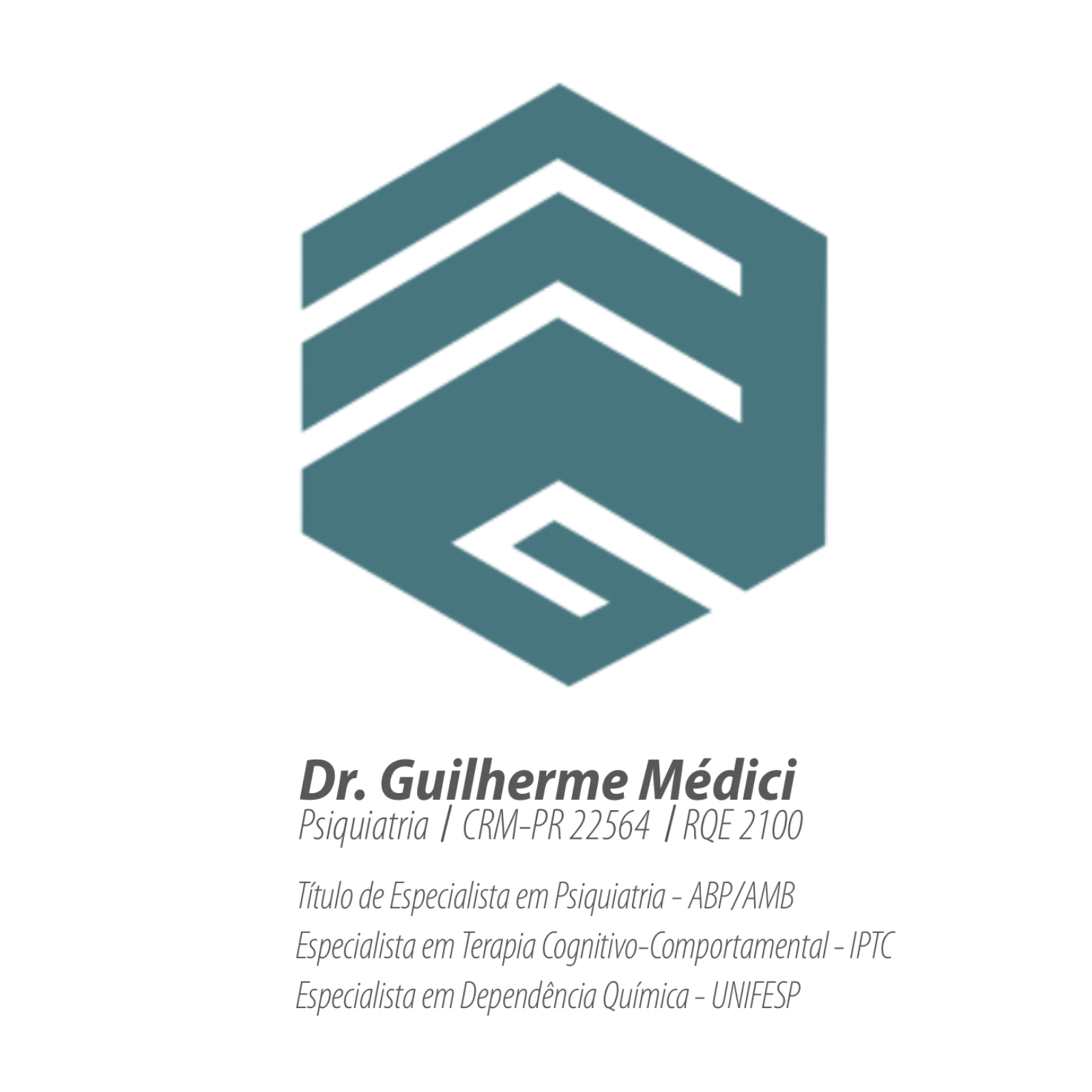 Possuo Título de Especialista em Psiquiatria pela ABP/AMB, com especializações em Terapia Cognitivo-Comportamental pelo IPTC e em Dependência Química pela UNIFESP.